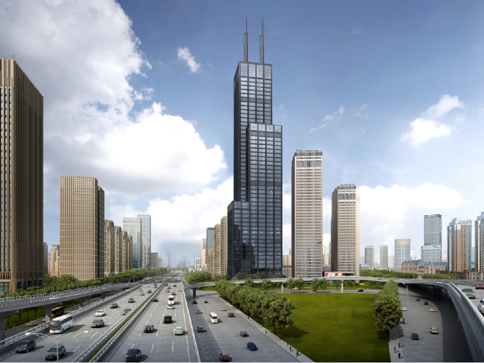 建筑面積131000㎡,內(nèi)筒外框超高層混合結構,地下2層,地上48層,建筑最 大 高度237.5m。