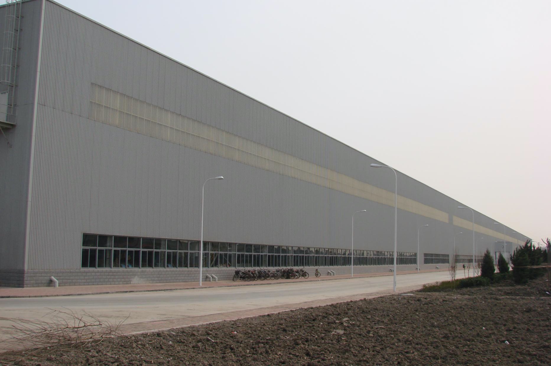 The construction area is 96000 square meters. The total amount of steel structure works is 14,400 tons. It is a seven-span single-storey heavy industrial plant.