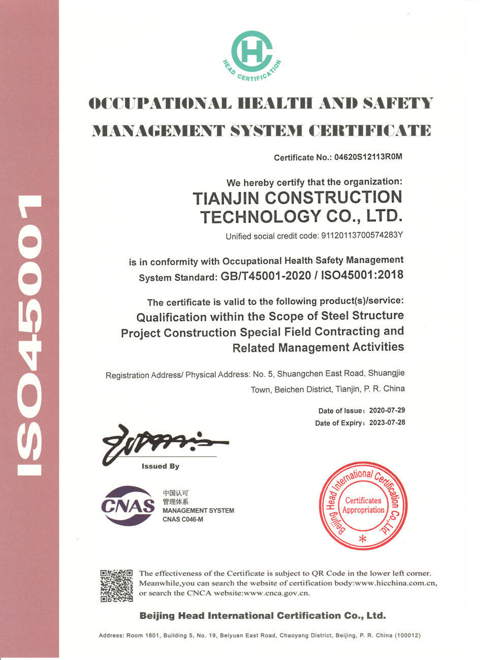 Occupational health and safety management system certificate