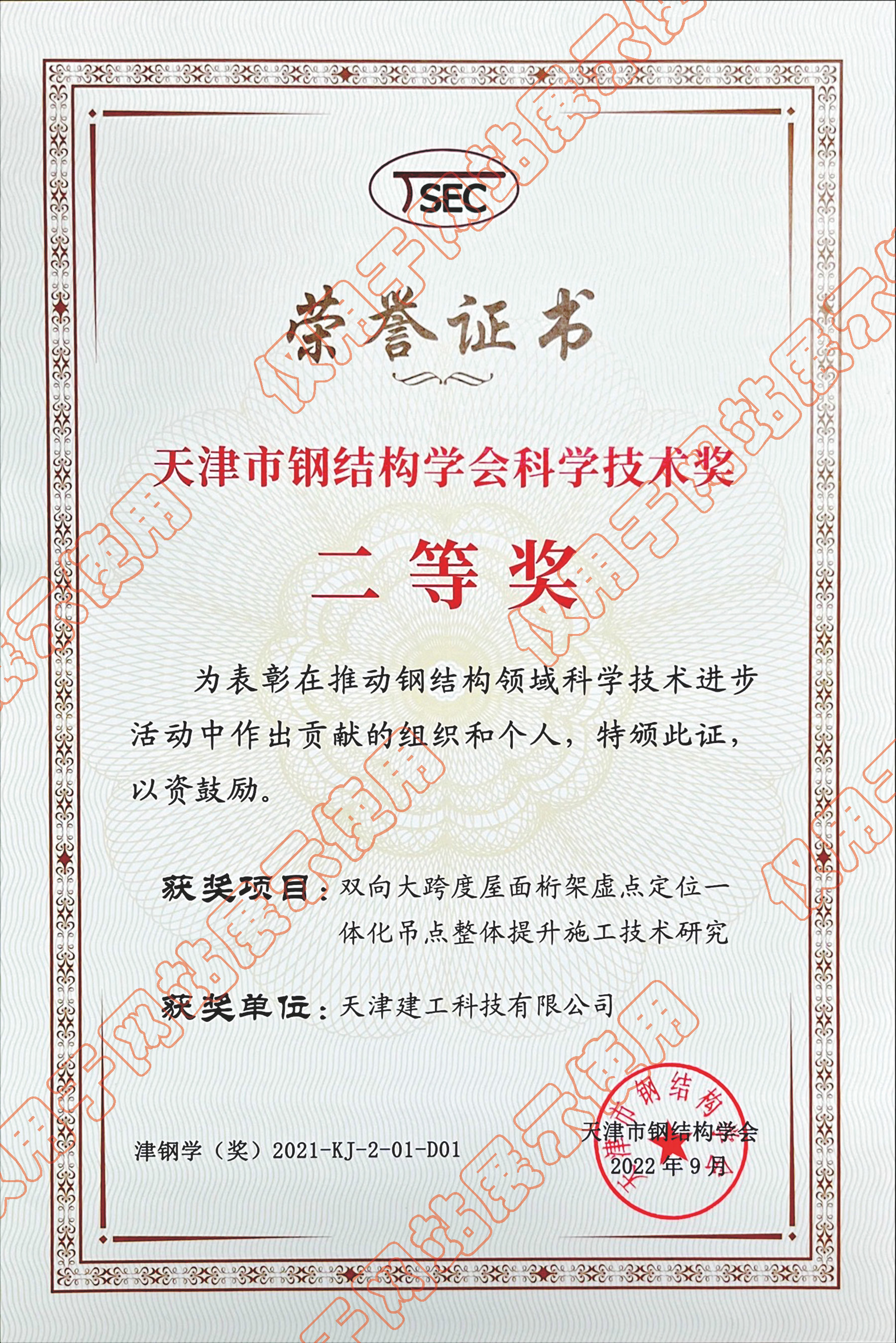 • 天津市鋼結(jié)構(gòu)學(xué)會(huì)科學(xué)技術(shù)獎(jiǎng)二等獎(jiǎng)_雙向大跨度屋面桁架虛點(diǎn)定位一體化吊點(diǎn)整體提升市公司技術(shù)研究